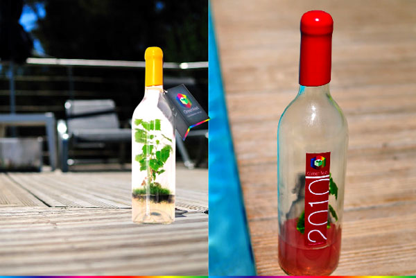 La GreenBottle, concept original né de la recherche végétale exprime votre volonté d’innover dans le plus pur respect des traditions et de la qualité. La plante se développe dans un environnement clos et stérile, la bouteille ne doit donc jamais être ouverte et ni exposée longtemps en plein soleil. Elle est entièrement recyclable et sans aucun entretien.